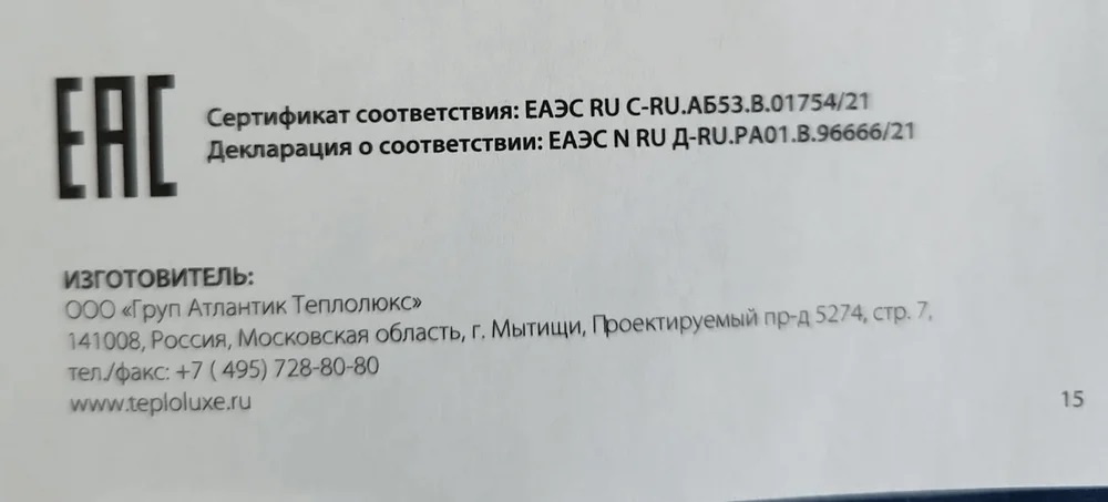 Рассмотрим наглядные примеры. На фото ниже — паспорт теплого пола, в котором указан номер не только действующего сертификата соответствия, но и Декларации о соответствии.