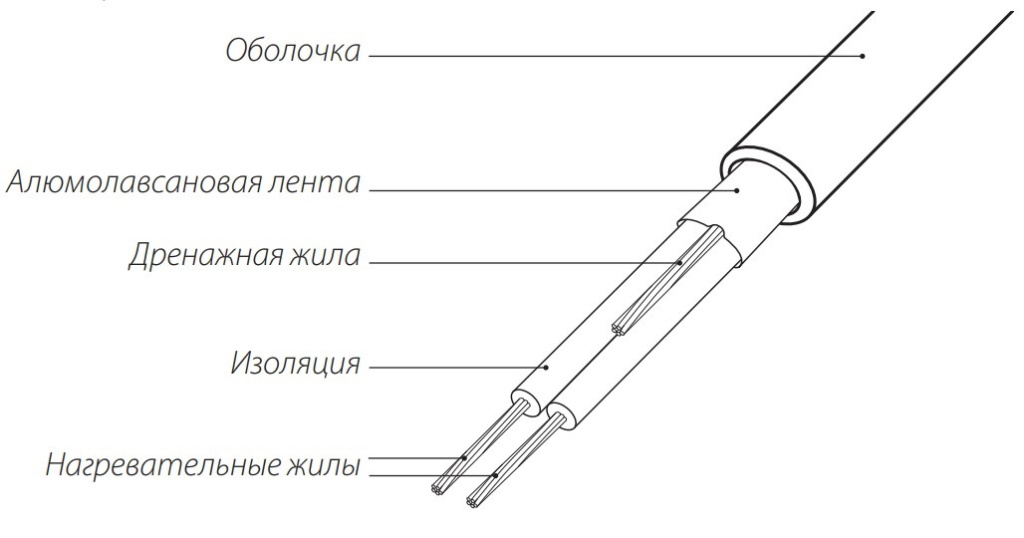 Конструкция двухжильного нагревательного кабеля