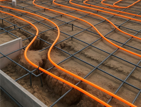 Такие провода также используют как напольные обогреватели, которые работают по принципу теплого пола. При использовании термопроводов этого типа необходимо рассчитывать их длину. Небольшую погрешность можно исправить путем регулировки уровня напряжения, которое поступает с трансформатора для прогрева бетона.