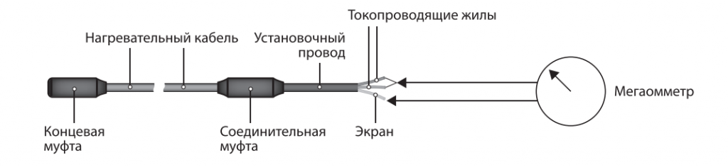 • Проверить и занести в Протокол измерений электрическое сопротивление изоляции и нагревательных жил (необходимо сделать это до и после монтажа, а при использовании в стяжке – после ее заливки).