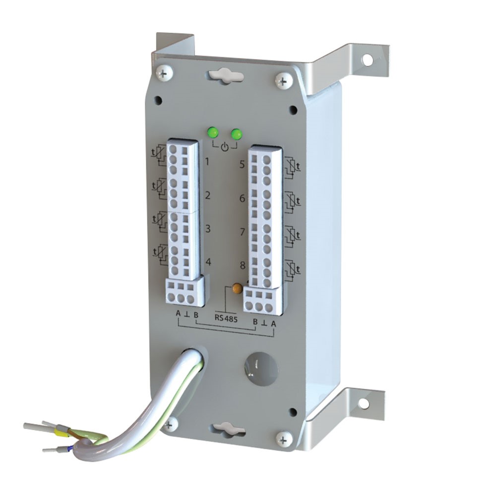 Модуль удаленного измерения температур ConTrace AS. Предназначен для установки в шкафах управления. Предусматривает до 8 каналов измерения температуры и 16 последовательно подключаемых модулей. Имеет искробезопасную электрическую цепь, а при масштабировании системы может включать до 128 измерительных каналов.
